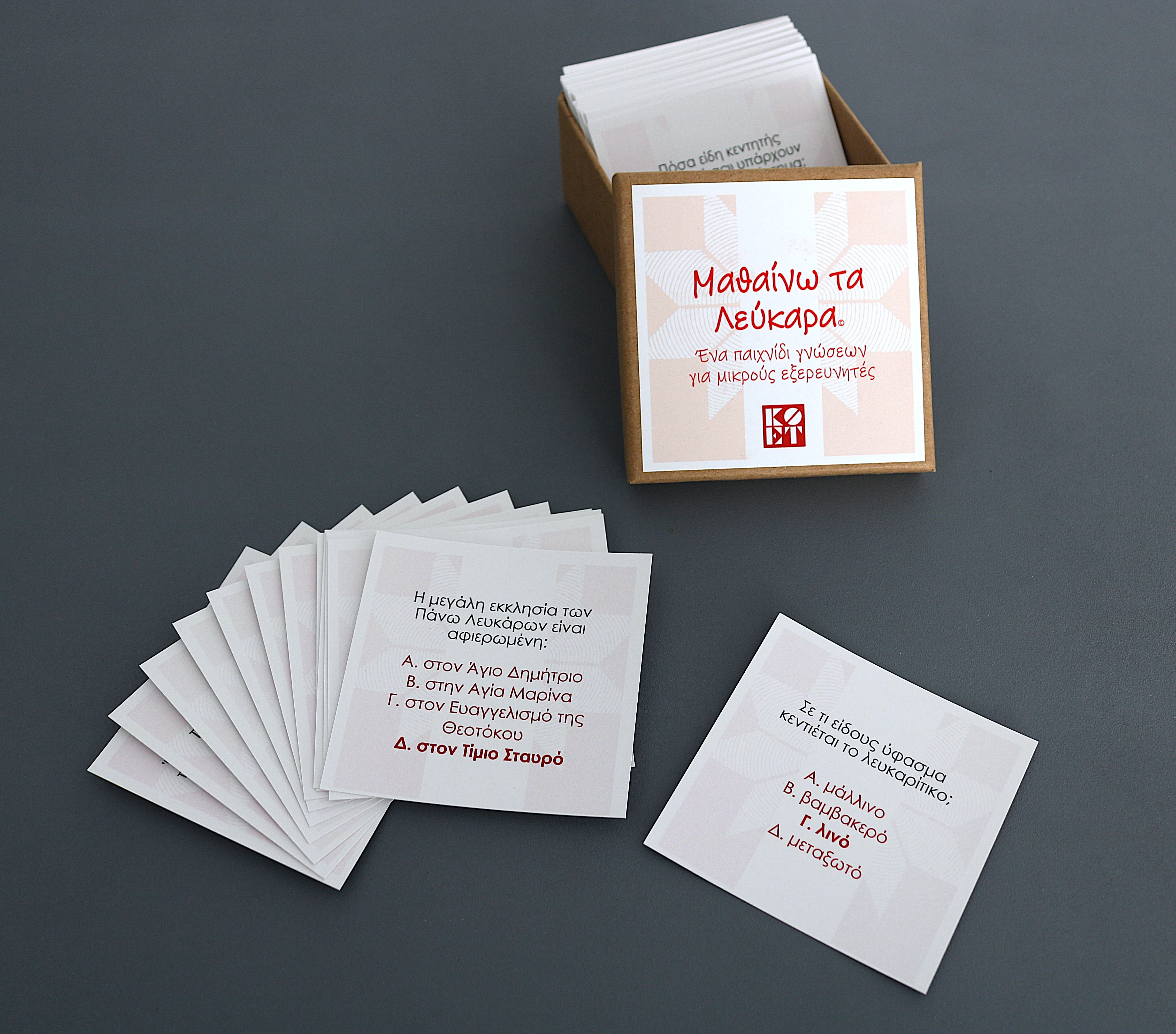 «Μαθαίνω τα Λεύκαρα»: Παιχνίδι γνώσεων, με ερωτήσεις πολλαπλών επιπέδων δυσκολίας, για γνωριμία των παιδιών με τα Λεύκαρα και το λευκαρίτικο κέντημα, μέσα από ενδιαφέρουσες πληροφορίες και γεγονότα